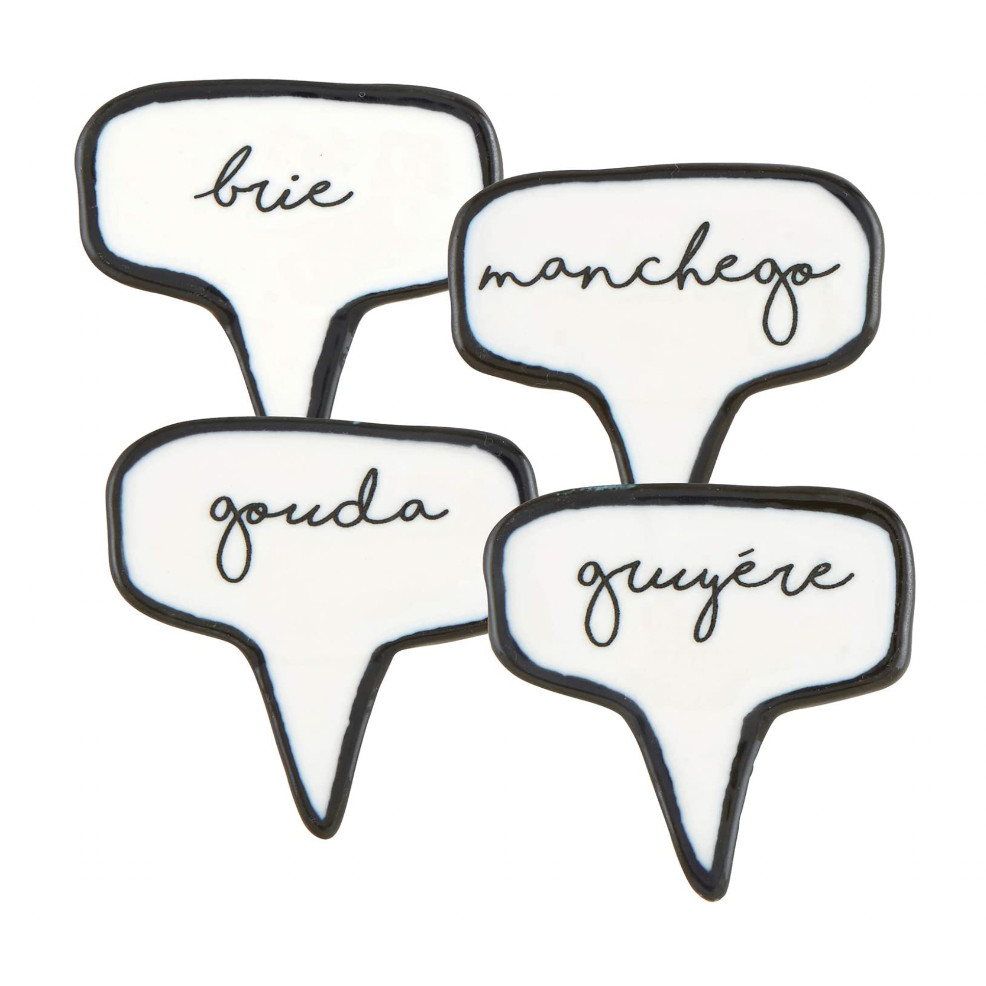 - 4-PIECE CERAMIC CHEESE MARKER SET in white ceramic with black edging - classic colors that a create a clean presentation of your cheese assortment