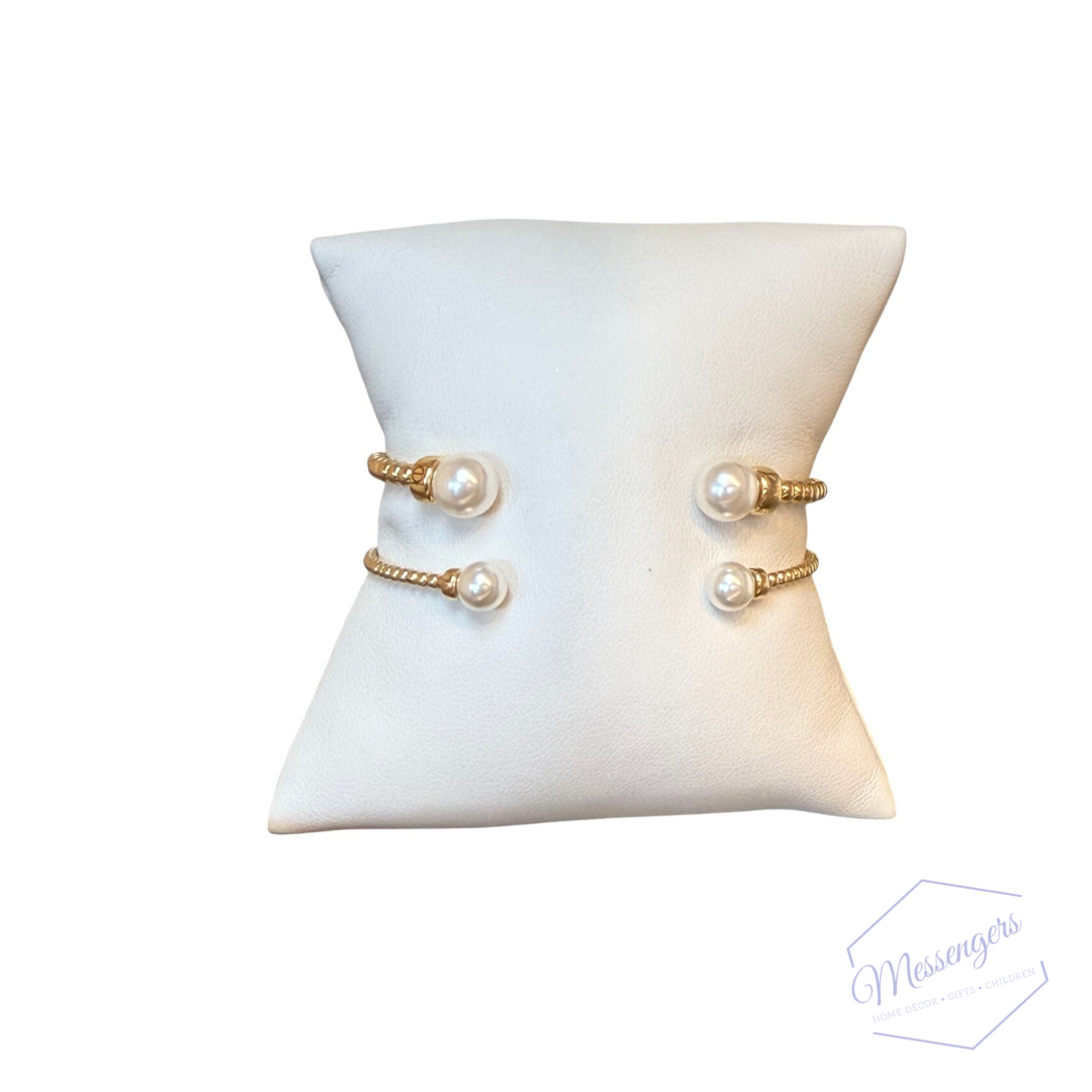 Classic Gold 2mm Bead Cuff - Pearl