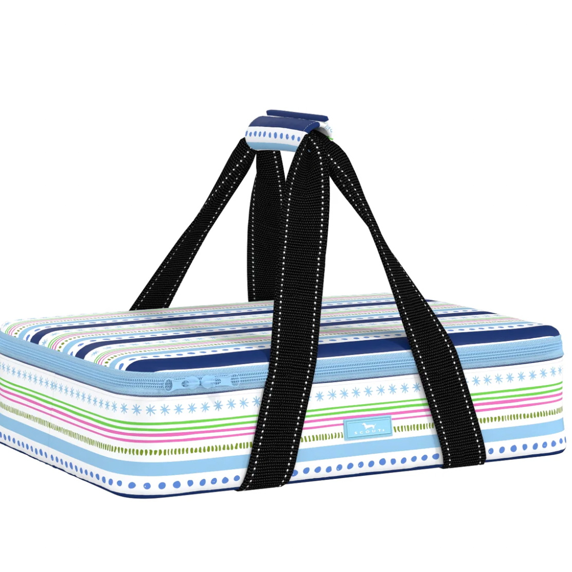 Tailgate? Potluck? Holiday gathering? This casserole carrier holds a 13" W x 9" D pan, keeping dishes warm for 2-3 hours or cool for 3-4 hours. Great for tailgating, sports practice, and as a leave-behind hostess gift. Got a foodie on your list? Consider this your "gift box" - simply fill with kitchen gear and/or gourmet items and it's the perfect gift.