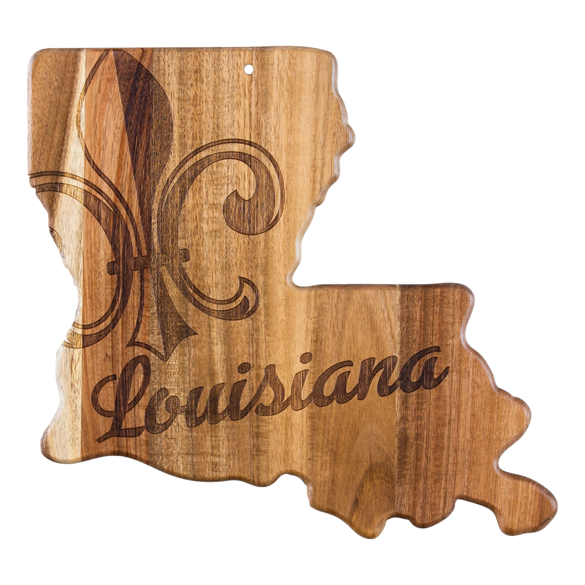 The boards are crafted from acacia wood for a beautiful look that's unique to each individual board. The Origins boards offer a stylish way for your shoppers to add some "local flavor" to their charcuterie spreads. They also double wonderfully as wall décor with the included hang tie. For use as a cutting board, we recommend flipping the board over to the blank side. Rock & Branch® Origins Louisiana measures 13" x 12" x 3/5".