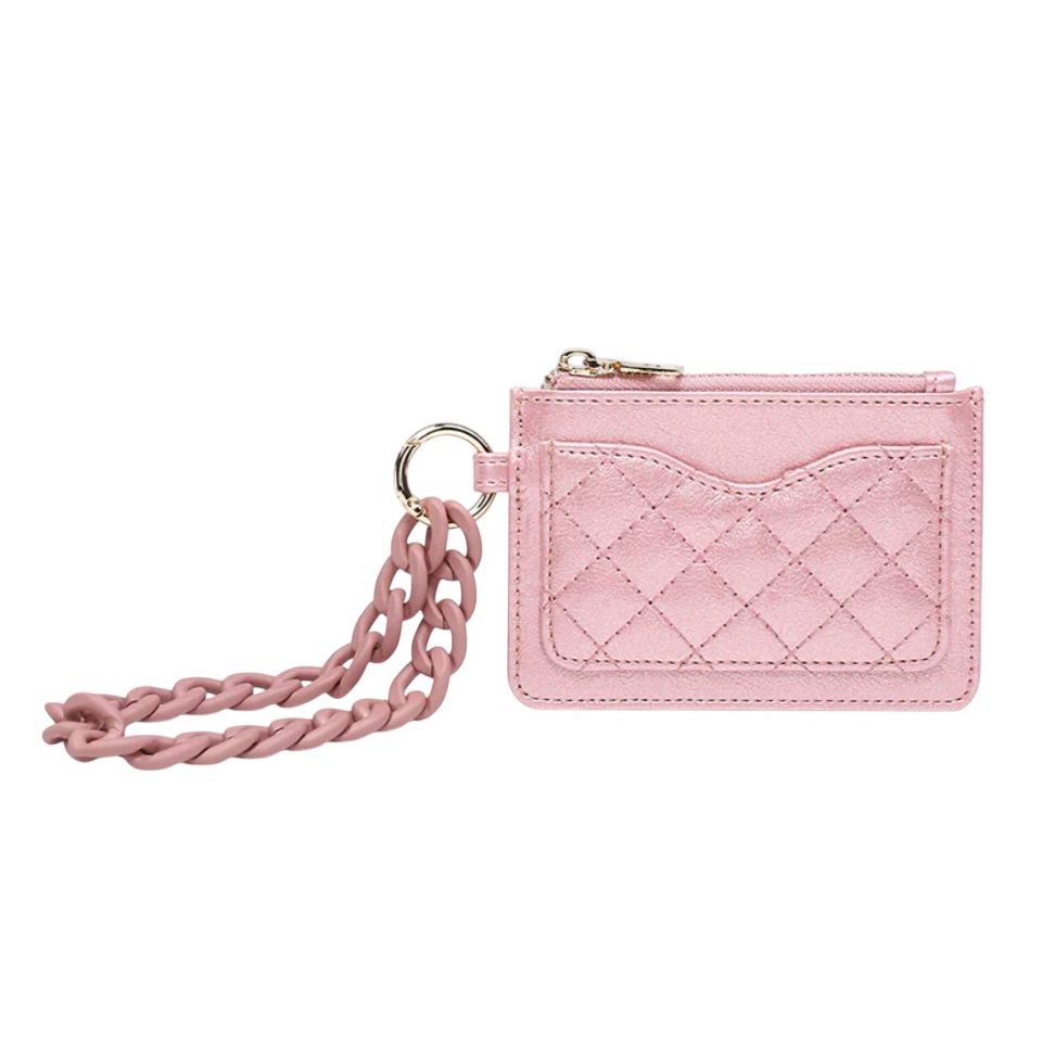 - Sparkling addition to our quilted collection with bold hues and acrylic wristlet strap.