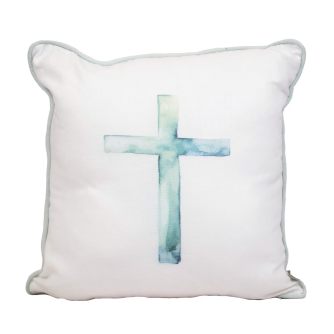 The Jade Cross Pillow Soft White/Blue is a beautiful and comfortable addition to any living space. Measuring 16x16, it features a stylish white and blue design that will complement any decor.